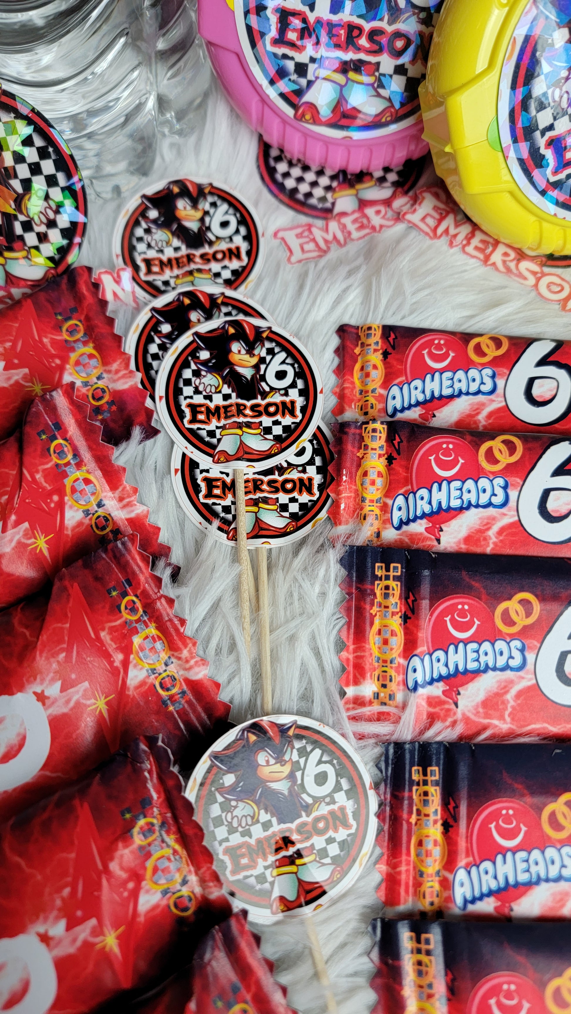 Custom party favors for 6 guests, 4 full size favors in each pack!
